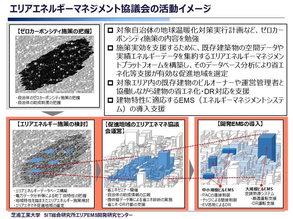 エリアエネルギーマネジメント協議会は、地域コミュニティと協働して既存建物の省エネ化等を推進し自治体のゼロカーボンシティ施策実効を支援する活動を行います。